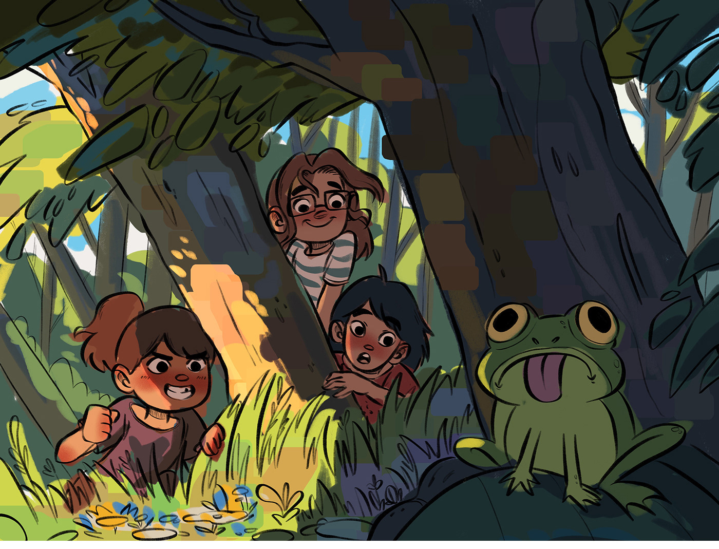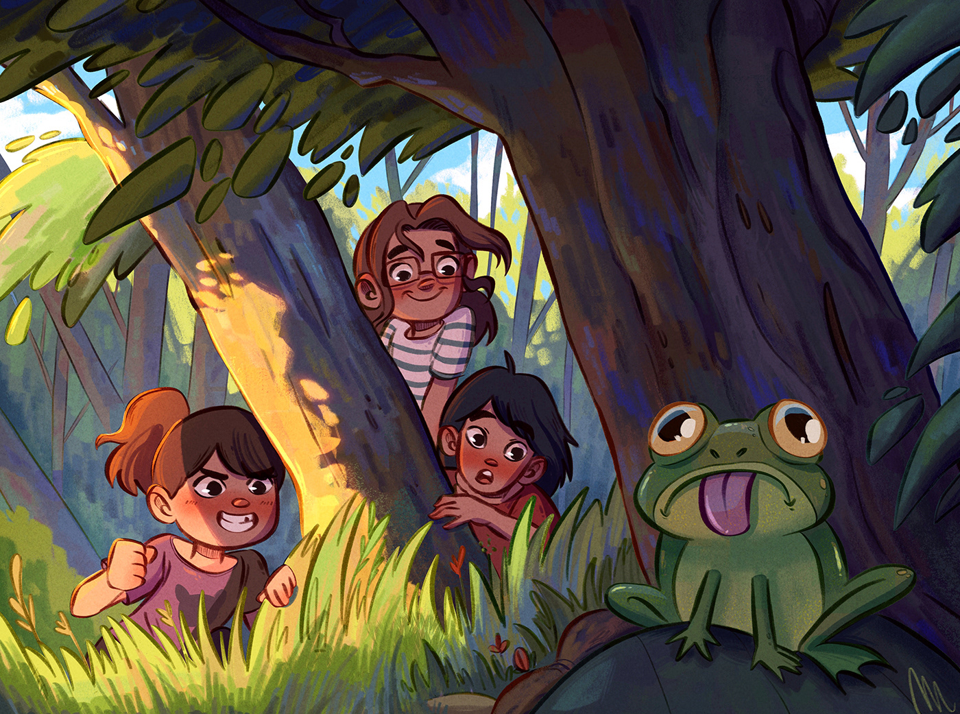 This is a personal piece about three girls on a frog hunt. The frog is not the smartest though, I wonder how it will end xD... I have some ideas.